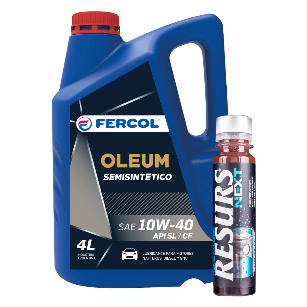 Te acercamos un kit con un aceite Fercol Oleum Semisintético 10W-40 de 4 litros, más una botella de 75 g de aditivo Resurs Next. Este combo te permite realizar un cambio de aceite con un lubricante de calidad premium y añadir un aditivo que mejora los síntomas de desgaste en motores con alto kilometraje o brinda protección adicional en motores nuevos.