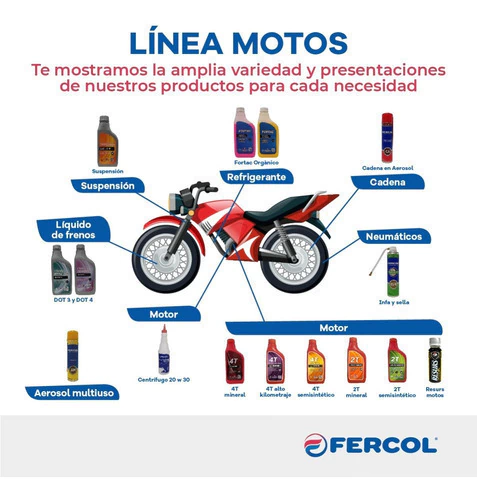 Lubricante semisintético multigrado de alta performance, diseñado para motores de motocicletas de cuatro tiempos, con o sin caja de velocidades integrada y con o sin embrague húmedo.